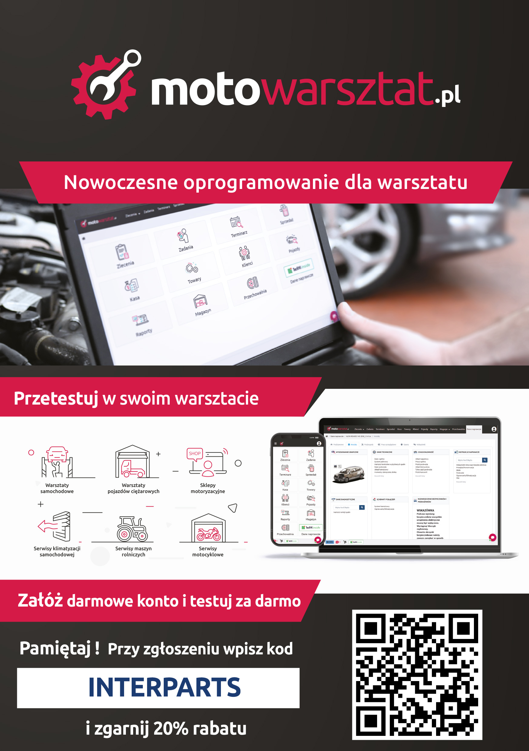 Załóż darmowe konto i testuj za darmo. Przy wpisaniu kodu rabatowego INTERPARTS zyskujesz 20% rabatu!