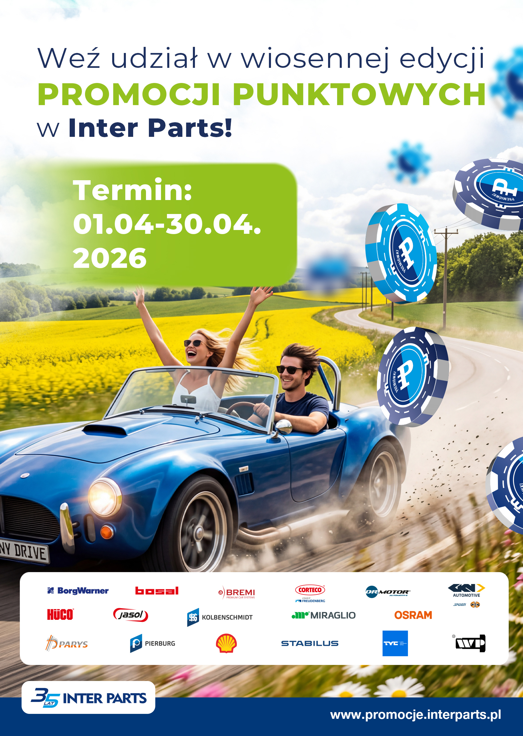 Od 01.04 - 30.04.2026 r. przy zakupach produktów wybranych dostawców otrzymasz dodatkowe Premiówki do wykorzystania w programie punktowym Inter Parts.
